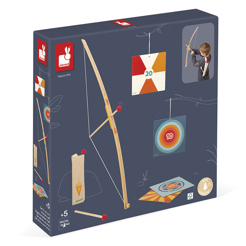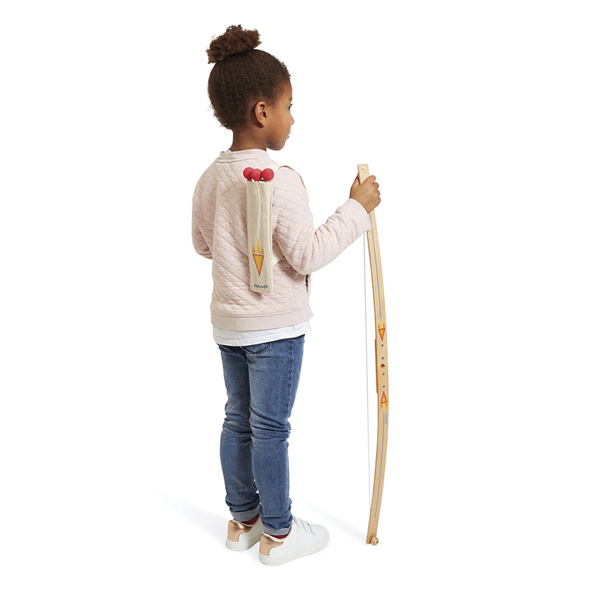 The Janod Archery Set lets little adventurers aged 3 and above test their aim and boost their skills with a safe and exciting twist on classic archery. This charming set includes a wooden bow, 3 foam-tipped arrows, and 4 colourful cardboard targets (with strings for easy hanging). Arrows can be carried in the fabric quiver with shoulder strap, perfect for active play indoors or out! This kit builds coordination, focus and confidence whilst sparking imaginative play and adventure.