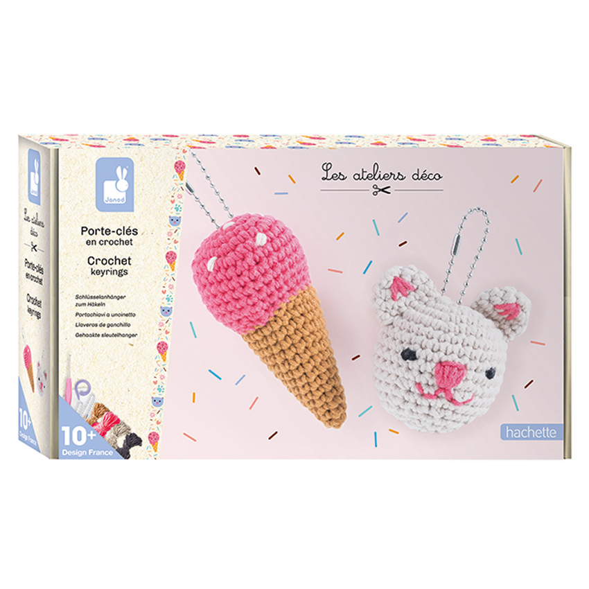 Crochet is making a big comeback! It's a calming activity that's easy to learn the basics and the Janod Crochet Keyring Kit includes everything you need to make two gorgeous keyrings. Recommended for children over the age of 10, it will help them develop fine motor skills, concentration and creativity. Using the four included balls of wool, there are enough materials to make a pretty ice cream and a super-cute kitten. The kit also contains a crochet hook, 2 chains with clasps, a plastic needle, a marker ring and an instruction booklet. Hang the keyrings on your bag or gift them to friends. If you love craft, Janod have many creative kits in their range to choose from!