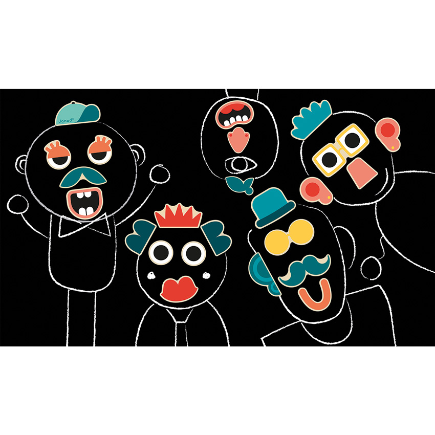 These Janod face magnets are a fun, engaging and creative way to inspire children's imaginations and encourage interactive play. With 24 pieces made from FSC certified wood, these magnets are both safe for children and environmentally sustainable. Children can create endless combinations of unique and expressive characters while promoting important developmental skills such as fine motor skills, hand-eye coordination, and social development. The magnets can be used on refrigerators, blackboards, and other magnetic surfaces, providing a versatile toy that can be enjoyed anywhere. We offer a wide variety of magnetic toys that for even more playtime fun.