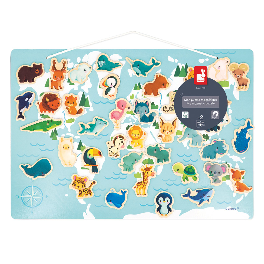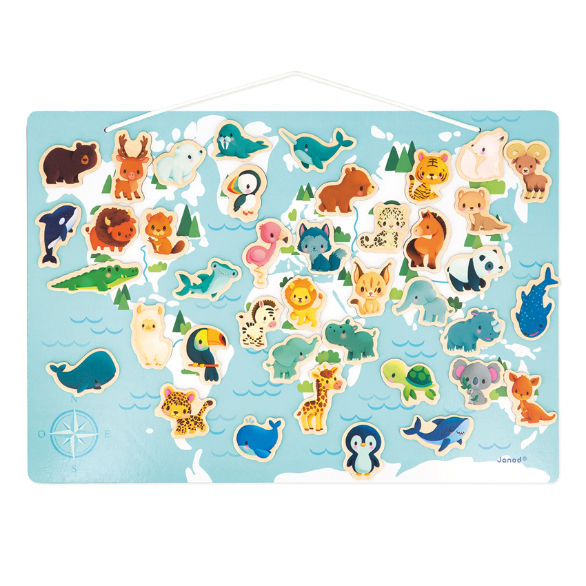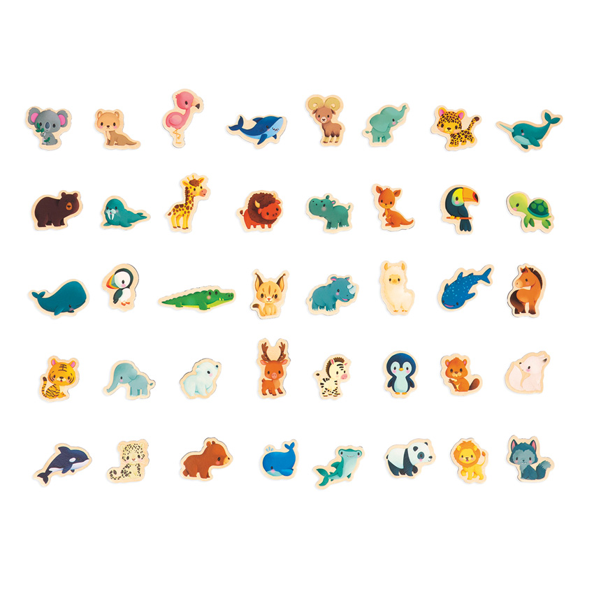 Introduce the world of animals to your children. This attractive stand-up or hanging magnetic board consists of 40 baby animal magnets that are the perfect size for little ones' hands. Spark imaginations and invent lots of stories all while learning the names and locations of where the animals live. An educational poster is included for reference and the magnets can be used in other areas around the home. This early learning magnetic toy is made from FSC wood and suitable for children aged 2 years and up.