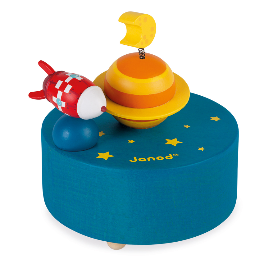 The Galaxy Music Box is a cute wooden music box with a mechanical winder, that gently plays music while the rocket spins around the planet. Let little imaginations go on a journey of space discovery and help them relax with the magical effect of music.