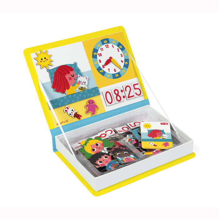 Learning to tell the time has never been easier with the Janod Learn To Tell the Time Magnetic Book. Copy the 8 picture cards depicting daily activities on the magnetic lid with the 75 magnets and add the analogue and digital times for those activities. Place the arms on the clock face and then use the numbers to create the same digital time. Once play is finished for the day, pop all the pieces inside and place it on the bookshelf. Fun for home and great for travel the magnetic book series from Janod have something for everyone!