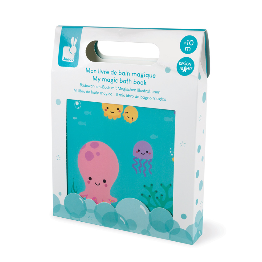 Discover the mysteries of the deep as you take a voyage across the ocean floor. Fun and stimulating, My Magic Bath Book is one of several in the Janod range of bath toys, which allow children to develop their curiousity and imagination. Share in the moment of surprise when water is added to the pictures and sea creatures appear! Once the book is dry, they will disappear so you can start your adventure all over again!