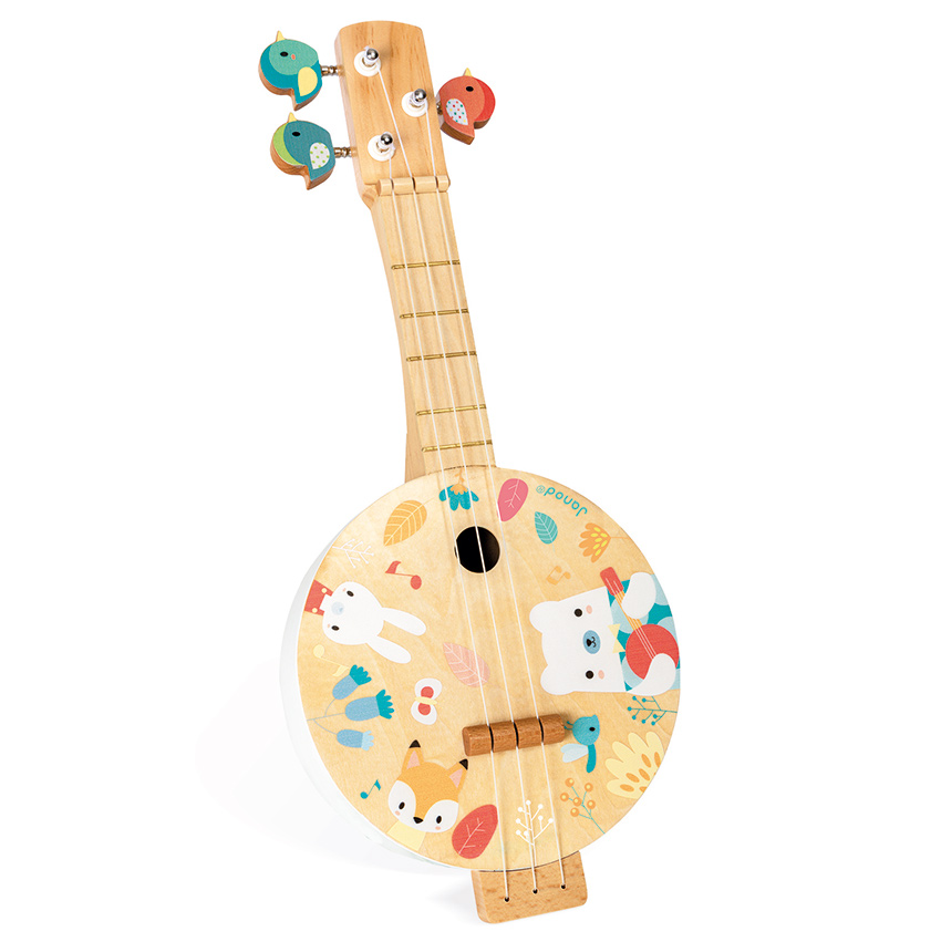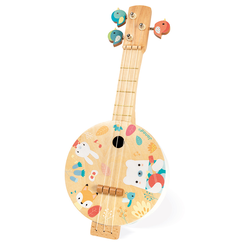 Give the birds a little turn on the tuning keys and you're ready to play! The Pure Banjo from Janod has been adapted for small hands to foster fine motor skills and a love of musical instruments. Made from wood and water painted with sweet forest animals, the banjo is a one of several in the Pure range of toys and will be a favourite in the playroom.