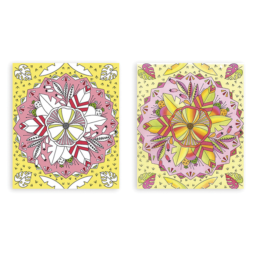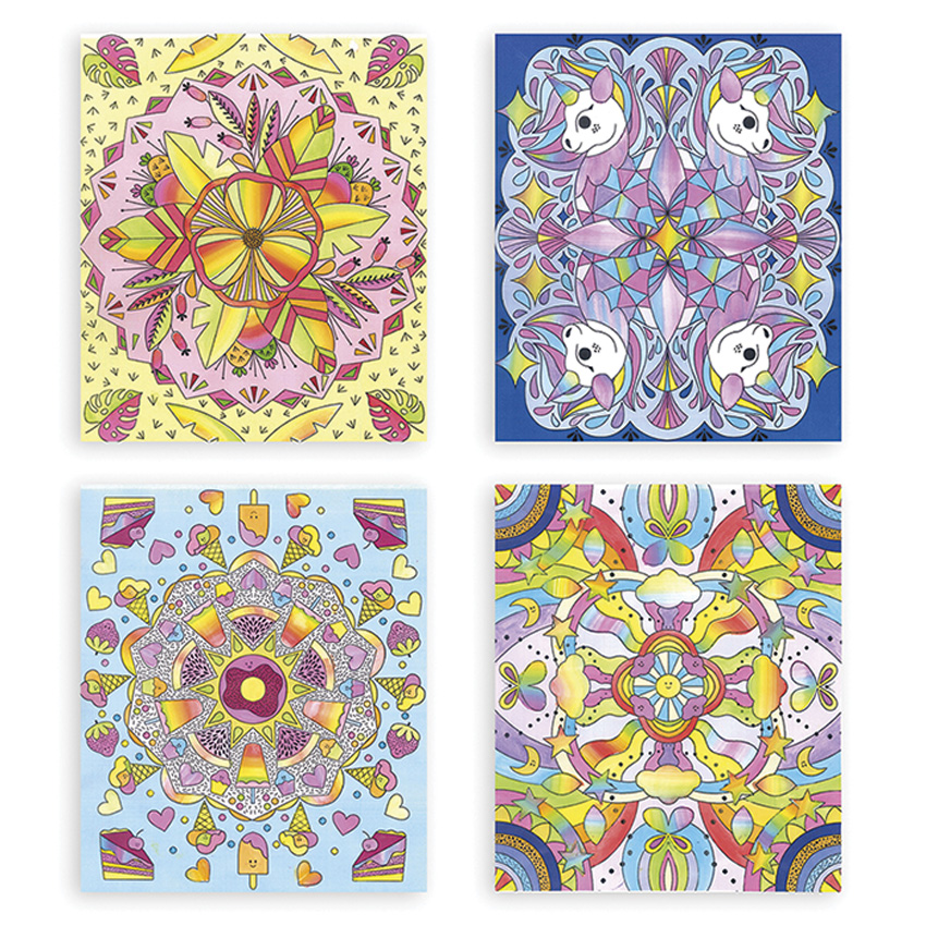 The Rainbow Mandalas kit from Janod have been designed in partnership with French Publishing brand Hachette. The range is called 'Les Ateliers du Calme' which when translated, means a quiet or calm workshop, making them an ideal craft activity for ages 7 and up, to aid in developing fine motor skills, creativity and imagination. Rainbow painting is an innovative creative technique which allows you to work several colours at the same time thanks to a wide brush and an adapted paint palette with 7 colours! The brush allows you to take up 4 colours at the same time and the gradation effect is superb and easy to achieve! To make everything simpler, the designs of the 4 pictures are made using the included stencils and can be refined using the fine brush which is also in the box. Just follow the step-by-step instructions in the booklet to paint your masterpiece, which will take about 1 hour to complete. The bright colours and rainbow effects invite creative play to encourage visual perception as well as shape and colour differentiation.