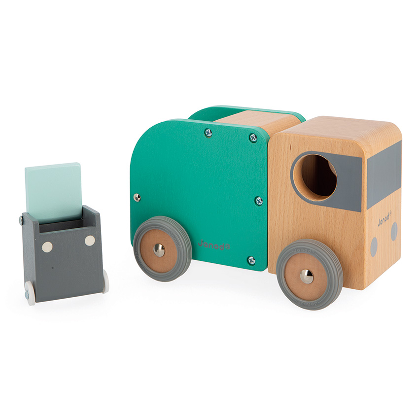 The fabulous Recycling Truck is part of the Janod Bolid range of vehicles. Designed for the over 2's, the collection is created from solid FSC certified wood and high-quality materials including water-based paint to ensure they are robust, safe and eco-friendly! Ideal for making your child aware of ecology and recycling from an early age, the truck comes with a magnetic bin at the back which tips up and opens so it can be emptied, just like a real one! Role play allows children to imagine the most incredible stories and create their own universe which aids in developing your child's imagination and reinforce fine motor skills while having fun. A perfect early learning toy, it's large dimensions make it a toy suited to small hands. With these all-terrain vehicles, firmly planted on their quiet rubber rimmed wheels, your child will be able to enjoy many imaginative hours of play.