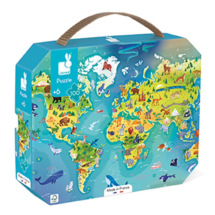 From Sydney to Los Angeles, travel the Earth to discover the mythical monuments and wondrous animals that inhabit our planet. Encouraging childrens memory and dexterity, the puzzle has loads of detail to capture the imagination, ideal for budding explorers and young fans of geography and adventure. A poster is included that serves as a reference guide for beginners and it is presented in the classic Janod suitcase with fabric carry handle. Made in France, printed with vegetable inks and produced from FSC cardboard, the World Puzzle from Janod is eco-friendly and perfect for kids aged 6 and up.